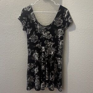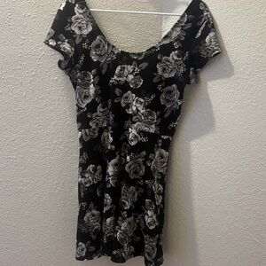 Chic mini dress with a floral pattern. Features a scoop neckline and short sleeves. Perfect for casual outings.