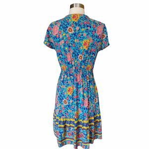 Boho Mini Dress Floral Exotic Print Spell Inspired Blue Cotton Medium EUC
