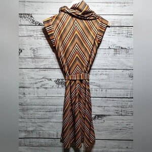 Mini Dress Brown Orange Gold Striped with Scarf size 8 70's Vintage Button