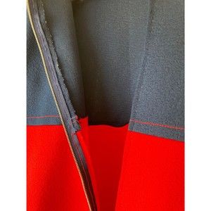 Sweet early 1970s mini dress in a bright red and blue block color polyester. The dress is a size small to medium. Made by a master dressmaker but looks never worn. she often made sample pieces for customers to view or to try a technique.