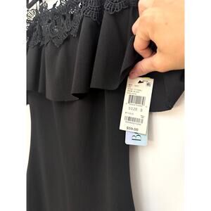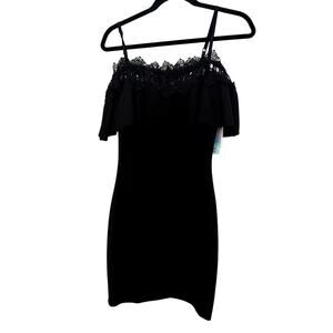 Mini Dress Off-The-Shoulder Crochet Black Sheath Bodycon Ruffled Trendy Sz 3 NWT