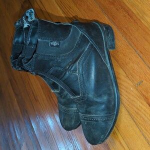 brushed leather, very soft. gently used. smoke free, pet free home.