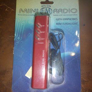 Mini FM Auto Scan Radio with Earphones & Mini Flashlight - NIP