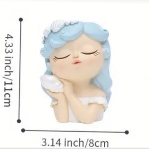 Adorable Small Fairy Princess planter for succulent or small plant. Comes with drain hole on bottom. Made with resin and are small to fit on your desk, night stand, window sill or office. Great gift for young girls or young at heart. Add a little color and whimsical feel to any place in your home.