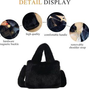 Features: Soft faux fur fabric makes this purse super comfortable and warm to touch. Compact design that’s perfect for essentials like your phone, wallet, and lipstick. Features a magnetic closure and a removable fur shoulder strap for versatile wear—carry it as a crossbody or a cute handheld tote.