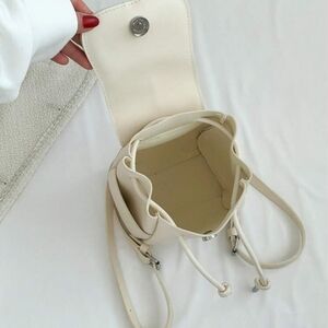 Design: Minimalist solid color with a sophisticated flap closure and drawstring detail.