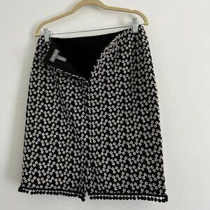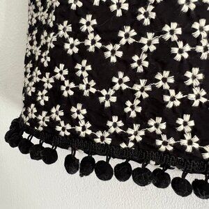 Mini Flower Embroidered Skirt - Pom Poms - black & white- Size 10