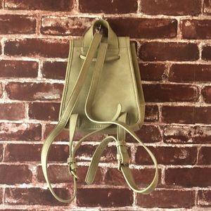 Green Francesca’s backpack with gold accents and a zipper pocket inside.