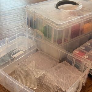 Comes with multiple different Perler and Artkal bead colors, as well as two mini bead tweezers, one circle bead pegboard, one star pegboard, and eleven square pegboards.