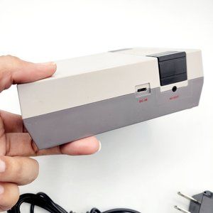 This is the Mini Game Anniversary Edition Entertainment System. It is a game system with 500 classic games built in. This lot comes with the original box, the main game unit, the power cord, the user manual, and 2 controllers.