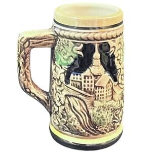 Mini German Beer Stein Mug Ceramic 3.75" Hand-Painted Glazed Vintage