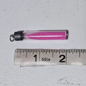 A compact and stylish mini glass vial pendant filled with vibrant pink powder. Features a sturdy metal cap with a loop for attaching to keychains or jewelry.