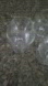 Set of 6 glasses Used, no cracks, no chips Material is glass, round shape I do not remember the brand capacity est 5oz (smaller size than a regular)