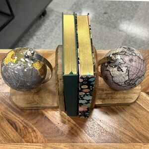 Mini Globe Wooden Bookends Set of 2 Mixed Pair World Map Multicolored India NWT