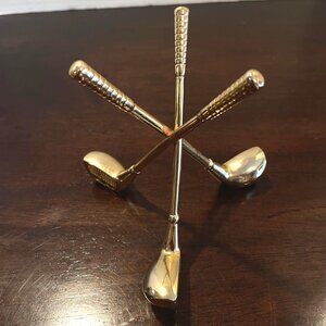 Mini Gold-Plated Golf Club Crossed Desk Business Card holder or Ornament - 4" -