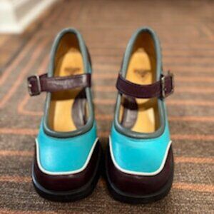 Mini Gorgeous Low-Heeled Mary Jane Turquoise & Burgundy