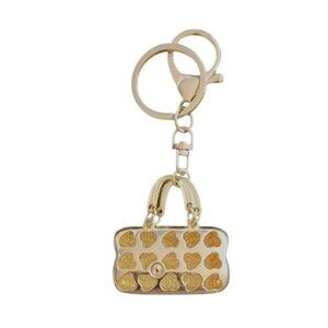 Super cute handbag key chain that can also be used as a purse charm. It is green with rhinestones on the front and gold open hearts on the back.