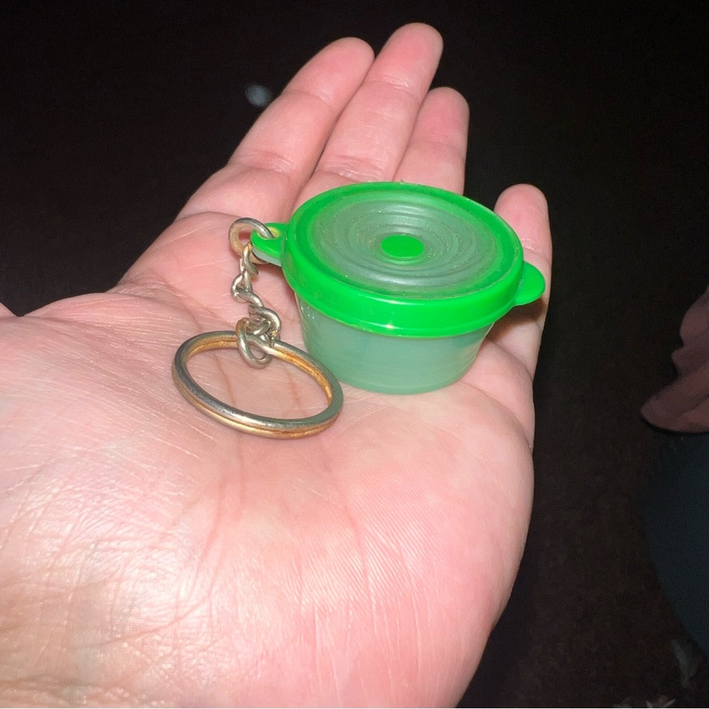 Compact and portable. Bright green color. A classic. Resembling the classic Tupperware container. A collectible and hard to find nowadays