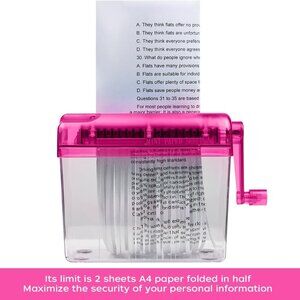Shredding Specifications Because of its mini size, you may need to fold paper in half to fit into the opening, but it will still be able to shred it in no time. Its limit is 2 sheets A4 paper folded in half.