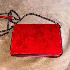 Red, yellow and green mini purse, with a metal chain and has a nice suede feel. Brand new, never used.