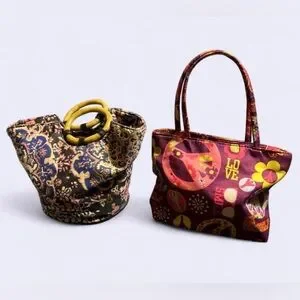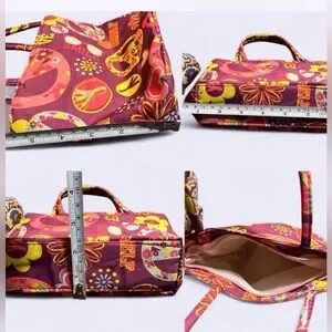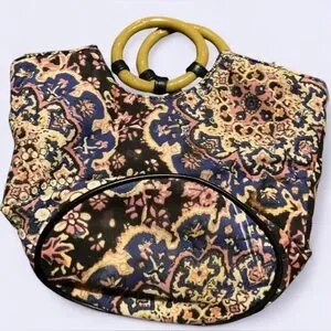 Women's Blue Pink Floral Lightweight Top Handle Boho Mini Handbag Purse