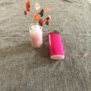 This Tree is made with Rose Quartz. The meaning of this stone is of universal love. It is attached to the heart and throat chakra. Use it to heal your heart, hence why it is called the heart stone.