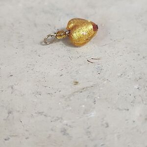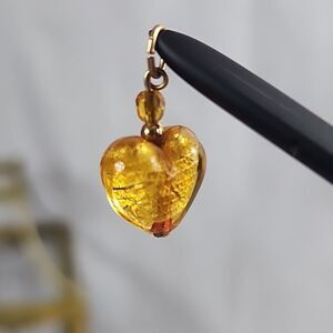 Mini Gold tone Sparkle filled heart with gold tone faceted bead. You just catch a glimpse of the red center from the front and a little bit on the back. Just shy of an inch long