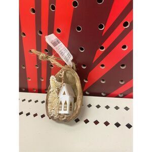 Mini House with Triangle Window and Ivory Bottle Brush Tree Scene Christmas Tree Ornament Wondershop™