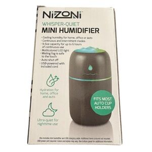 Experience soothing mist with the Mini Humidifier. Its sleek black design and LED light create a calming atmosphere. Perfect for nighttime use.