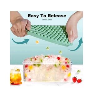 The product is a set of 3 mini round ice cube trays, perfect for freezing small ice cubes for cocktails or other drinks. Made of plastic and featuring a stackable design, these trays are dishwasher safe and washable for easy maintenance. The green color adds a fun and vibrant touch to your bar tools collection. Ideal for creating tiny ice cubes for a more elegant and customizable drink experience.