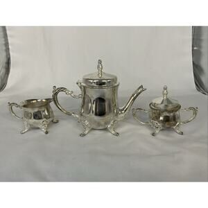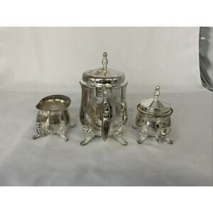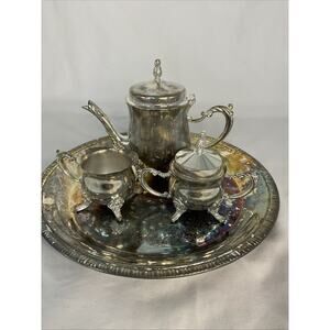Mini International Silver Co 4 Pc Coffee Tea Set Teapot Creamer Sugar Platter
