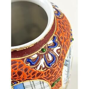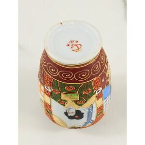 Mini Japanese Vase Geisha Portrait 3 3/4" Porcelain Gold Trim 70's Asian Vintage