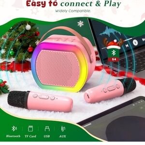 Mini Karaoke Machine with 2 Wireless Microphones, Kids Portable Karaoke Machine for 3, 4, 5, 6, 7, 8, 9, 10, 11, 12+ Year Old, Best Birthday Christmas Toy Gift-Stocking Stuffers for Girls