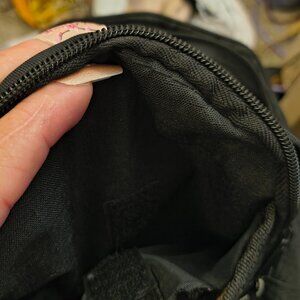 This is a mini backpack it's black and is from Kohl's. Multi compartment with lots of little air compartments for things like pencils brushes cords cell phone compartment water bottle compartment.