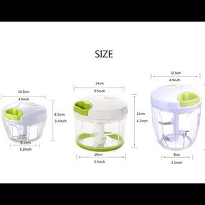 The Mini kitchen Aid Chopper is used to chop meat, vegetables, tomatoes, garlic, salad, oignons. It is manual, with a flexible lanyard/rod.
