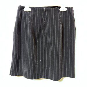 Unknown brand (feels like good quality), Mini / Knee high black, white pin striped, skirt (size 3/4). Zipper on side, front tie. Cannot read tag but 94% polyester
