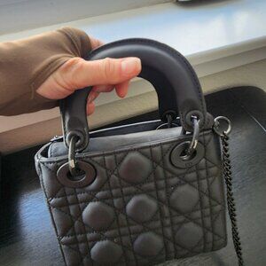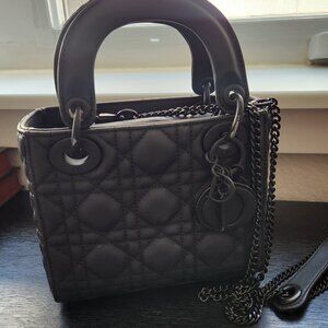 Ultra matte Black Mini Lady Dior Bag - Lightly Used, with some scratches to the metal and wear on the close flap.