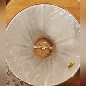 Mini lampshade still wrapped in plastic. Brown with black and copper color stripes. 5 inches tall 5 1/2 inches across bottom and 3 inches across top. Clip on style.