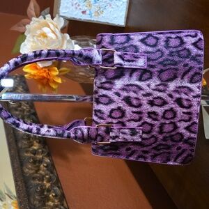 Stylish and bold, this purple leopard print handbag is perfect for making a statement. The unique design adds a touch of wild elegance to any outfit.