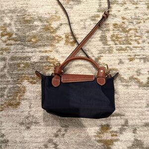 Stylish black crossbody bag with brown leather accents. Features a convenient strap and secure closure. Excellent condition!