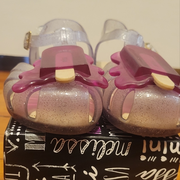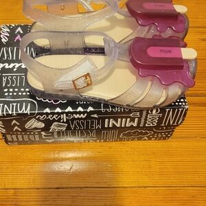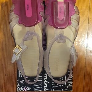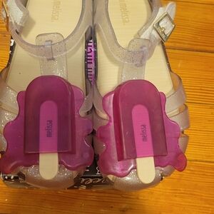 The most adorable sandals for toddlers my absolute favorite they are clear so goes with everything with a pop of purple π show stoppers for toddlers π size 11 best for size 10 runs small.