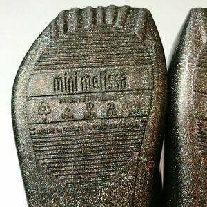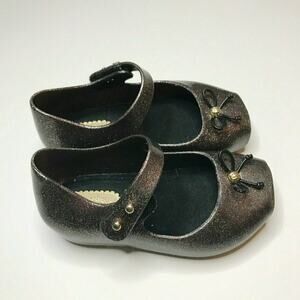 Adorable Mini Melissa ballerina flats. These are a pretty glittery, metallic color. Velcro closure. In excellent condition. Smoke free and pet friendly (non-shedding) home. #minimelissa #ballerina #footwear #shoes
