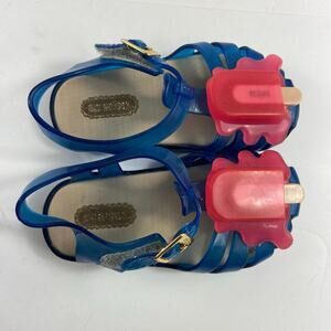 Adorable mini melissa sandals with melting popsicle design. USA size 7. 22/23 EUR. 20/21 Bra. 13 Jpn. Blue with pink accents. Perfect for summer fun. Made in Brazil 🇧🇷