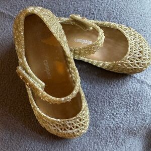 Chic gold baby shoes by Mini Melissa. Features intricate woven pattern. Size 10, Preloved