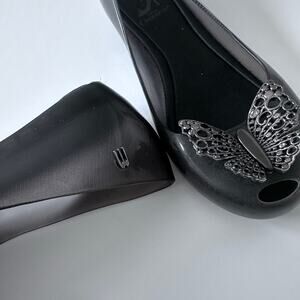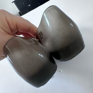 Romantic, light and delicate. Ultragirl's iconic shape features butterflies with small chrome accents for a unique design and super cool touch and fresh style. A charming addition to the looks of the little ones. Grey jelly scented peep toe size2