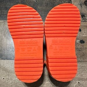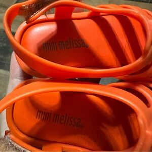 Excellent condition with minor wear to footbed and buckle (see photos). Gorgeous orange-red color. The cutest shoe for your little babe!