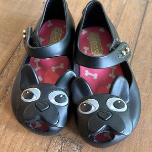 Black Frenchie face and tail on back Velcro strap Minor surface scratches Worn only a handful of times