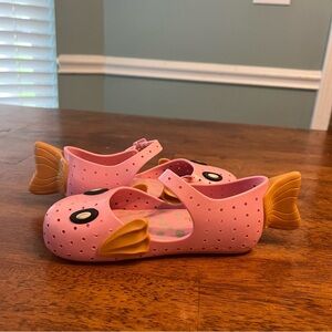 Mini Melissa Furadinha Fabula Mary Jane Flats axolotl pink orange size 10