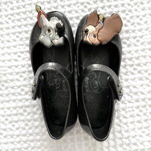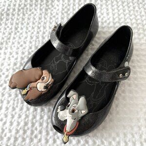 Mini Melissa Lady And The Tramp Black Sparkle Shoe Girls Size 10 Disney Cartoon