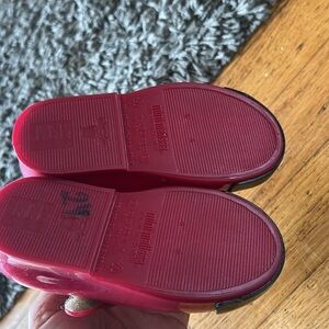 Stylish and comfortable, these Mini Melissa kids shoes feature a vibrant red and black design. Perfect for any occasion.